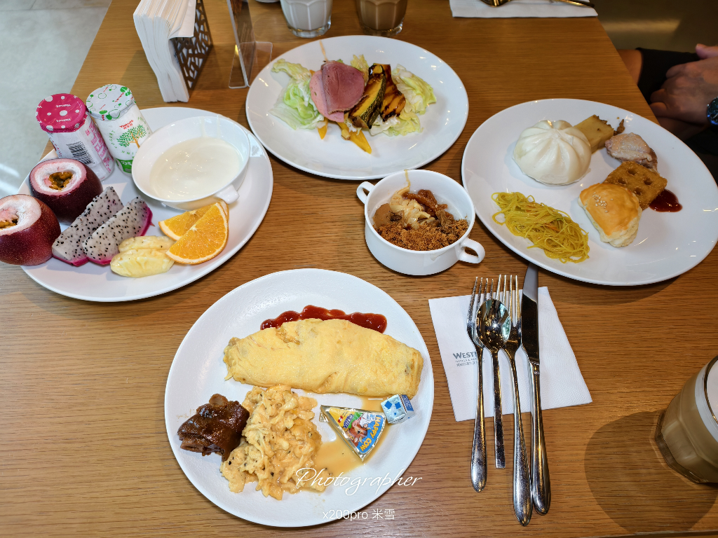 #桃園大溪笠復威斯汀度假酒店#知味西餐廳 早餐到大溪笠復威斯汀酒店住一晚幫老闆過生日昨晚吃了韓國主題晚餐還不錯,來看一下早餐和前次相比,有沒有進步😌 早餐分三個餐期,可見住客之多7:00、8:00和9:30,可以線上預約餐枱分布挺廣,從水果、沙拉、開胃菜到各式熱食和現作蛋枱都有,也有2台現壓吐司機,多了一點樂趣